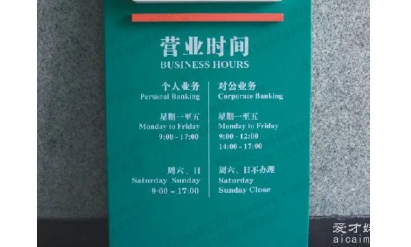 对公业务:周一到周五,9:00-17:00;节假日休息。